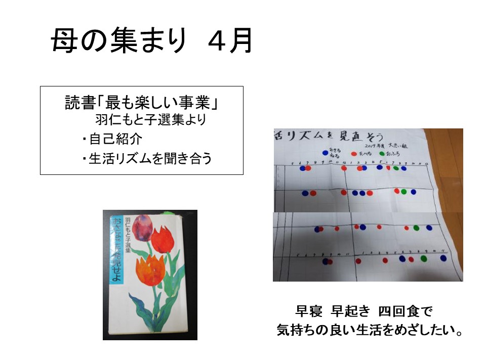 4月幼児生活グループ集合日のお知らせ