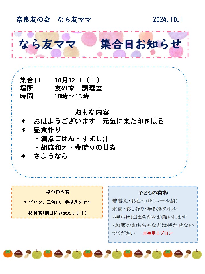 10月なら友ママ 集合日お知らせ