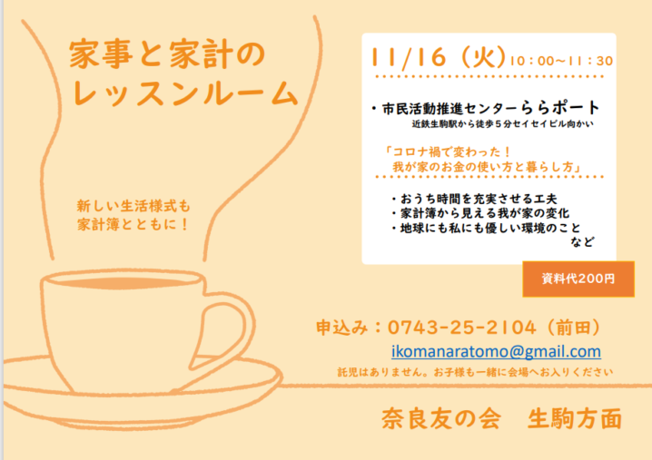 2021年 奈良友の会 家事家計講習会が始まります。前向きになれるお金の使い方! あなたなら、どう使いますか?最寄の会場でお待ちしております。お問い合わせnaratomo@office.eonet.ne.jp お問い合わ…